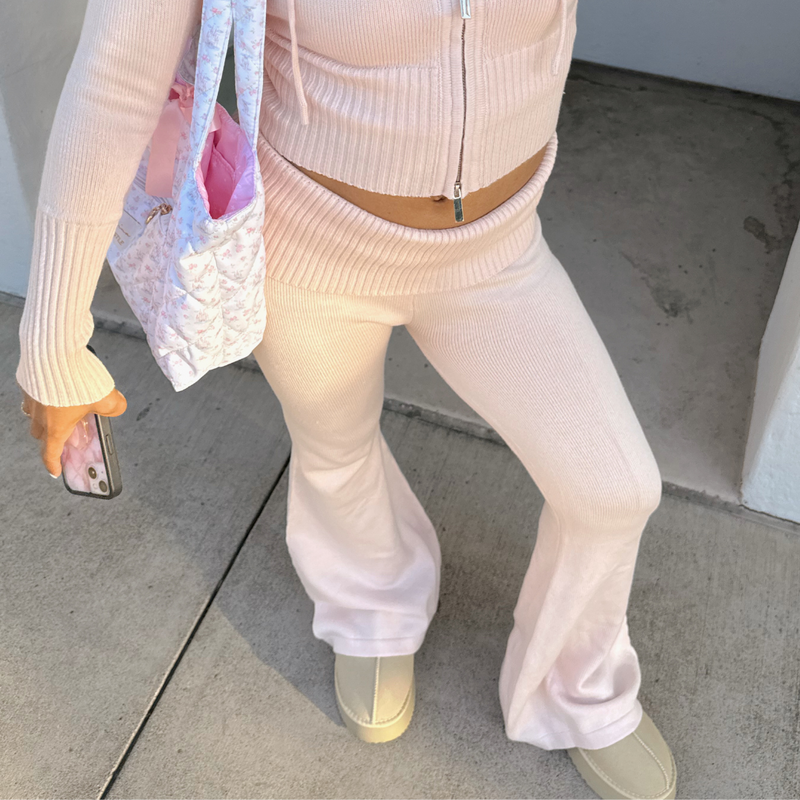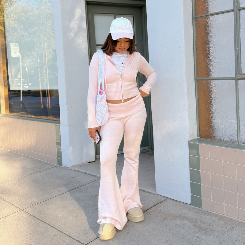 Our Pink Bunny Flare Pants are the ultimate lounge wear essential! These pants feature a high-waisted design that flatters your figure while keeping you comfy all day long. The stretchy fabric ensures a snug fit and ribbed waistband for that extra coziness. Pair these flares with a cropped sweater or tee for a cute, laid-back look.