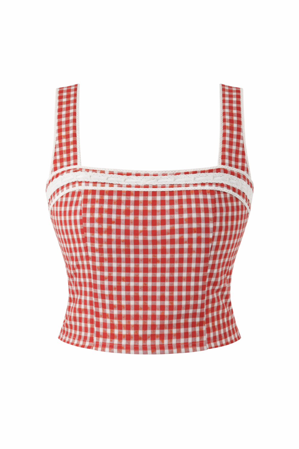 Our Cherry On Top is a red gingham crop top with a square neckline, lace trim, and a flattering, fitted shape. Made from a lightweight linen fabric, it features a smocked back and side zipper for comfort and ease. Fully lined and easy to wear, it’s an effortless pick for sunny days.