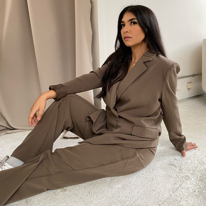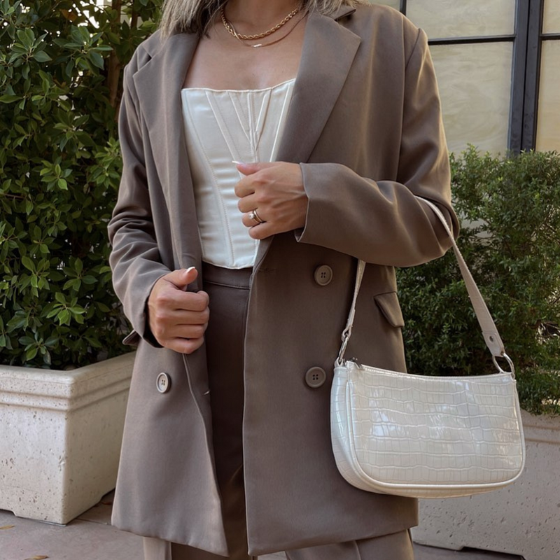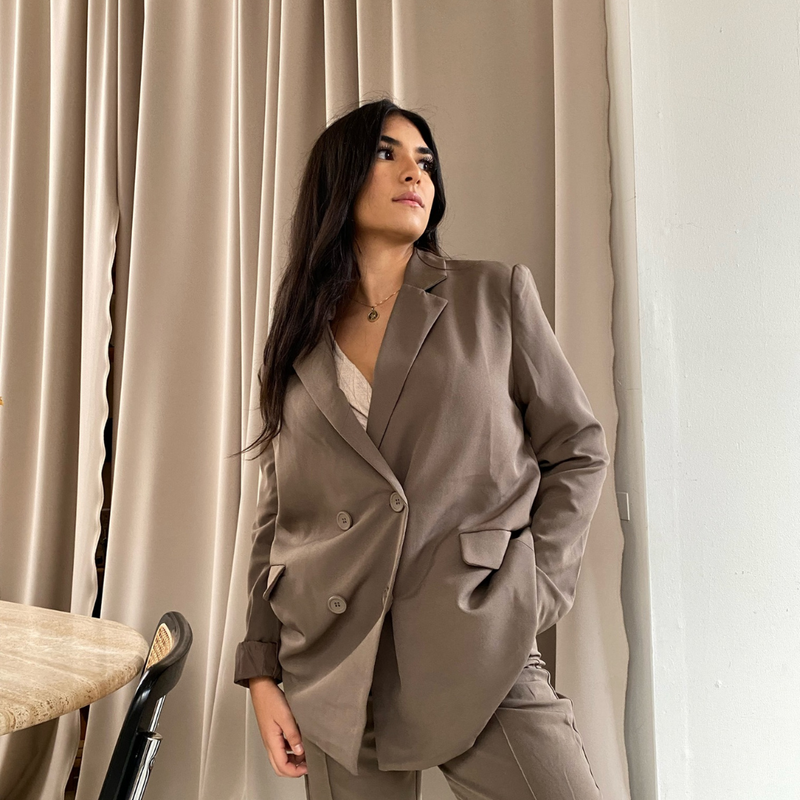 Nothing screams chic better than a matching pantsuit and blazer. Our Downtown Blazer - Chocolate is an oversized boyfriend fit blazer. Two side and double breast buttons, and pockets on both sides as well. Match this with our Downtown Trouser to complete the look!