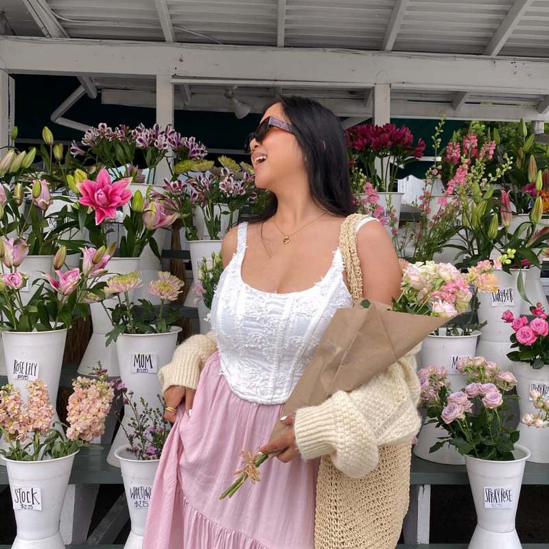 Our Flora Corset is a white structured corset top with subtle rosette applique details throughout the fabric. It displays a round neckline, boning throughout the bodice, adjustable straps, and a 3 sizes of clasp closure at back for easy on and off access. Fits true to size. Has some to little stretch.