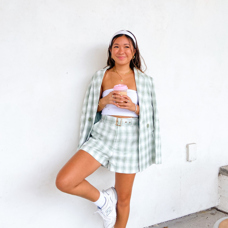 Our It Girl Shorts - Blue are a pair of blue plaid high waist shorts. They feature a foldover detail at the thighs, a high waist fit, a belt, and removable pockets. They also feature a zipper and button closure at the front. Pair them with our blue It Girl Blazer and blue It Girl Crop Top for the cutest three piece matching look!