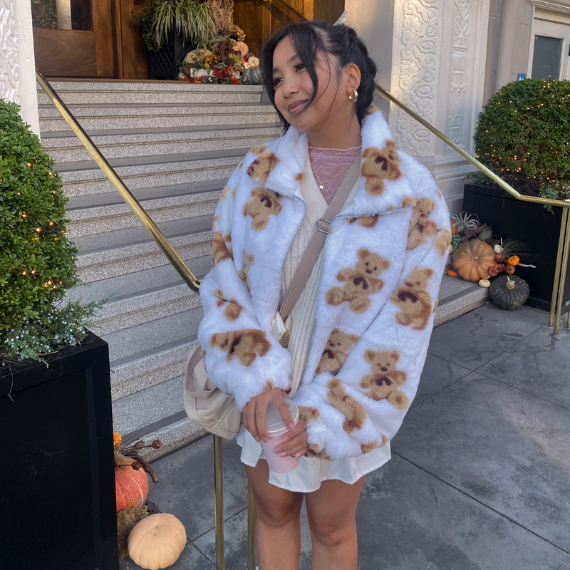 Teddy Bear Print Plush Jacket